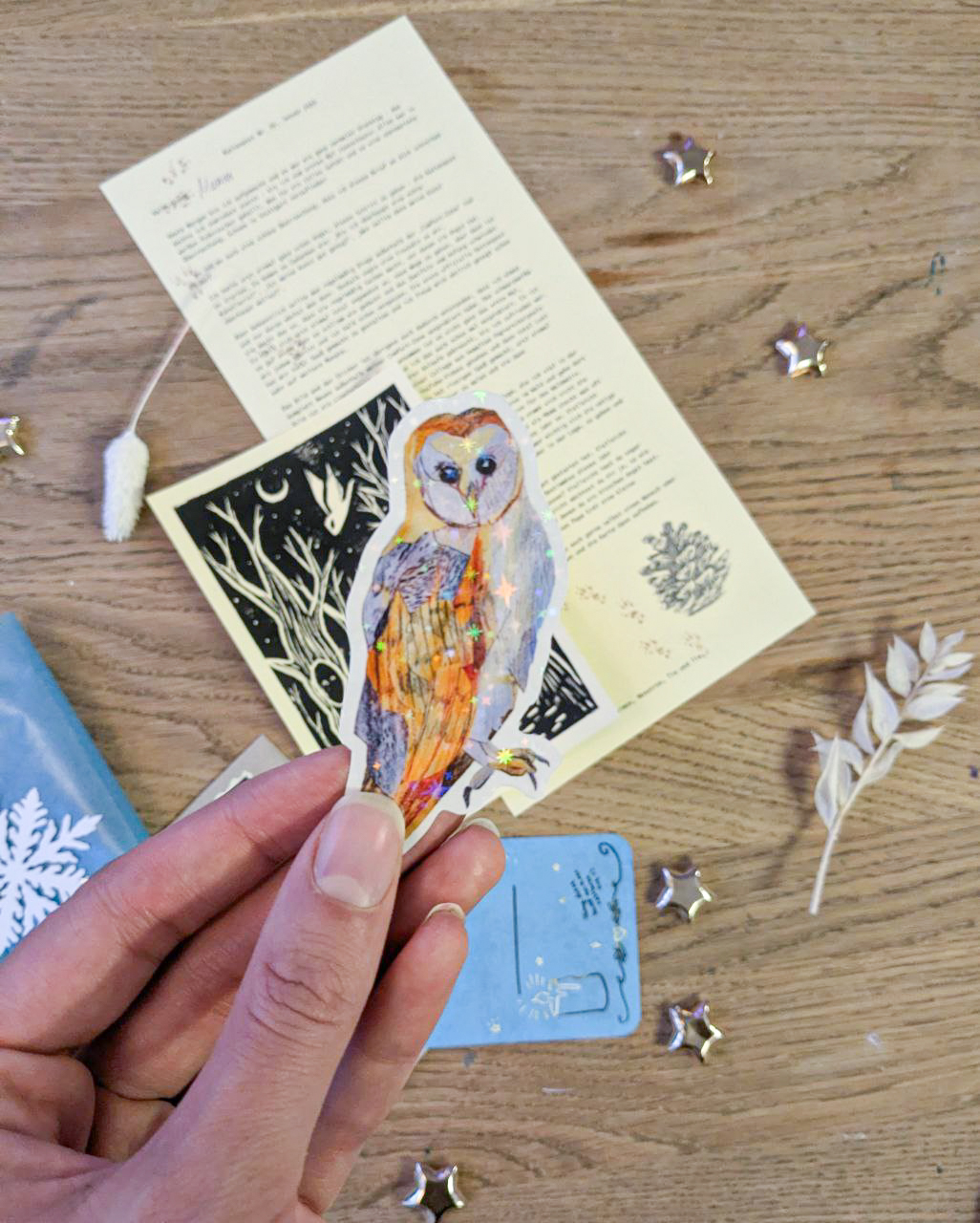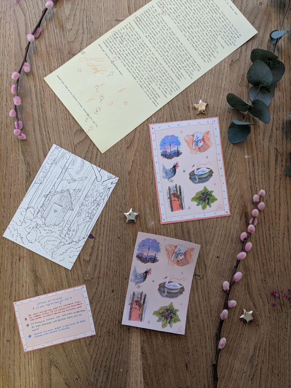 Es wird meistens ein A6 Kunstprint sein und ein Sticker sowie ein persönlicher Brief, aber ich werde auch andere Sachen ausprobieren z.B. Lesezeichen, Stickersheets, Linoldrucke, was zum selber basteln oder ausmalen oder vielleicht mal sogar eine kleine Mini-Geschichte.